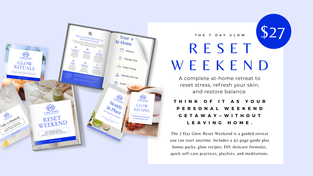 Everything inside the Reset Weekend is designed to restore your mind, body, and skin — giving you a true at-home retreat.