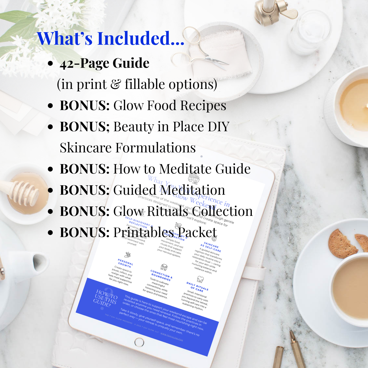 Think of it as a full weekend mapped out for you — from the first prep step to the final glow check-in.